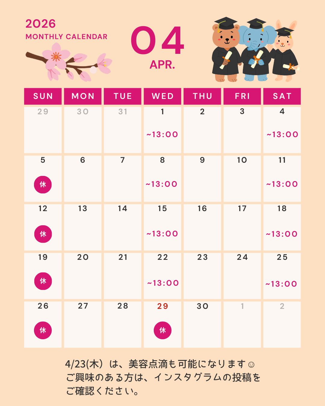 4月の診療日カレンダーとなります。